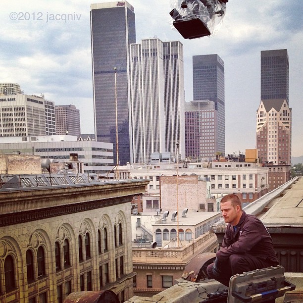 Thanks to @jacqniv for sharing this picture of Chris O’Donnell on what looks like the roof of 460 S Spring St…